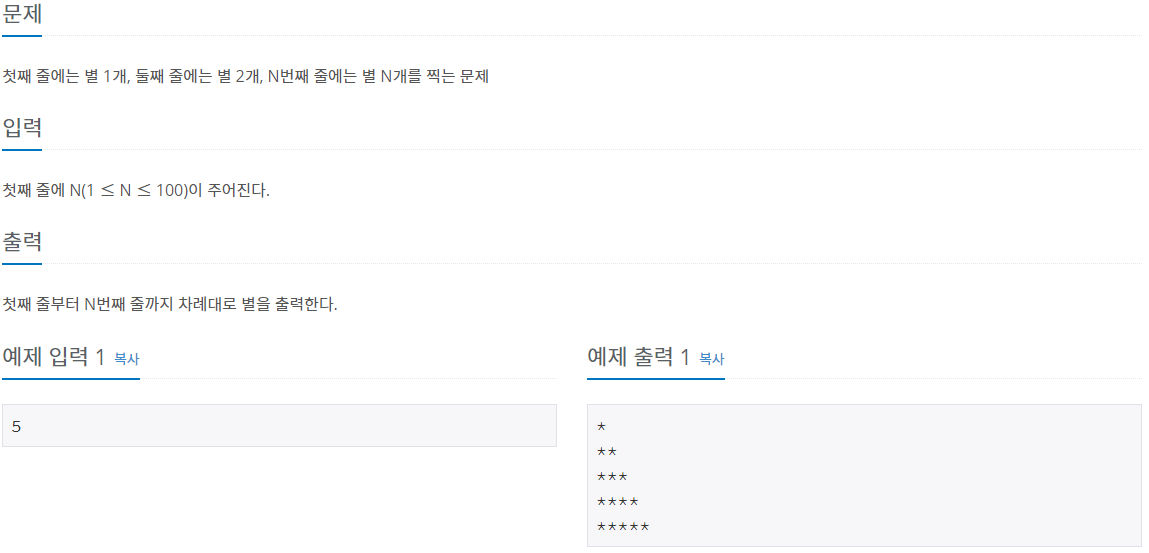 이번에는 for문을 사용하여 *을 찍어내는 문제이다.