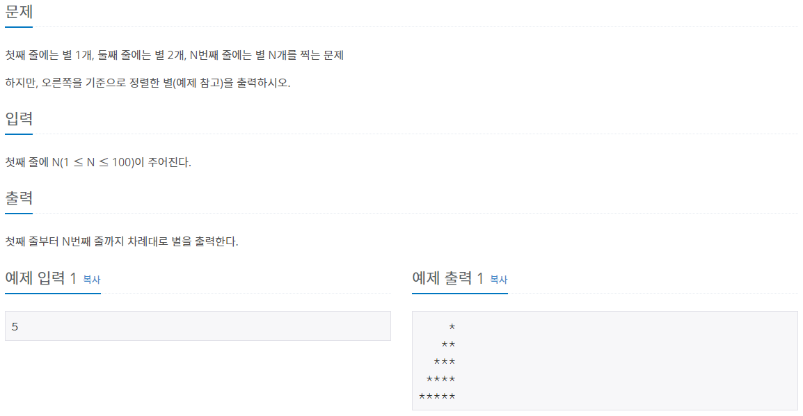 그 다음 문제는 오른쪽 정렬로 별찍기 였고 여기서는 for문을 3개나 썼다.