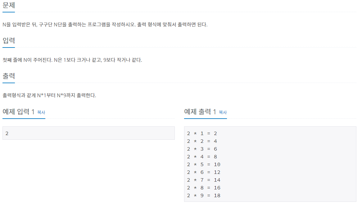 for문으로 그 변수에 9까지 곱한 곱셈 목록을 출력해야하는 문제
